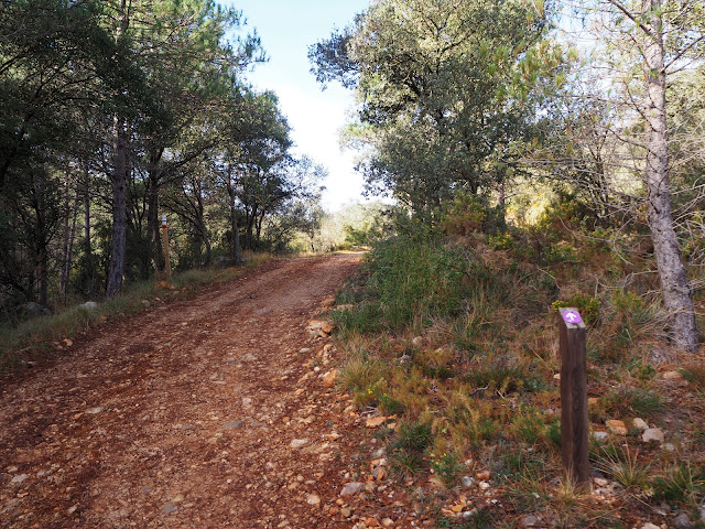 Continuamos ahora por campos abandonados, siempre hay un poste indicativo, o hitos, para guiarnos el camino.